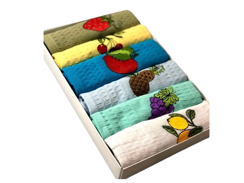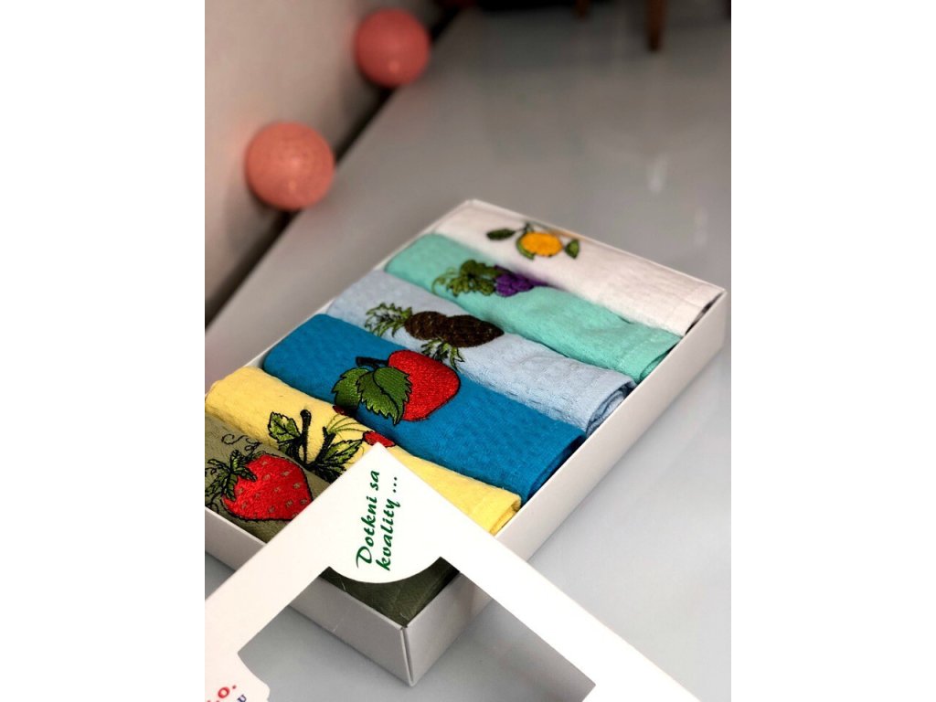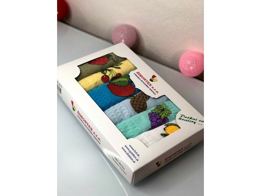 Kuchyňské utěrky "vafle" s motivem ovoce - sada 6 kusů, dárkově zabalené.