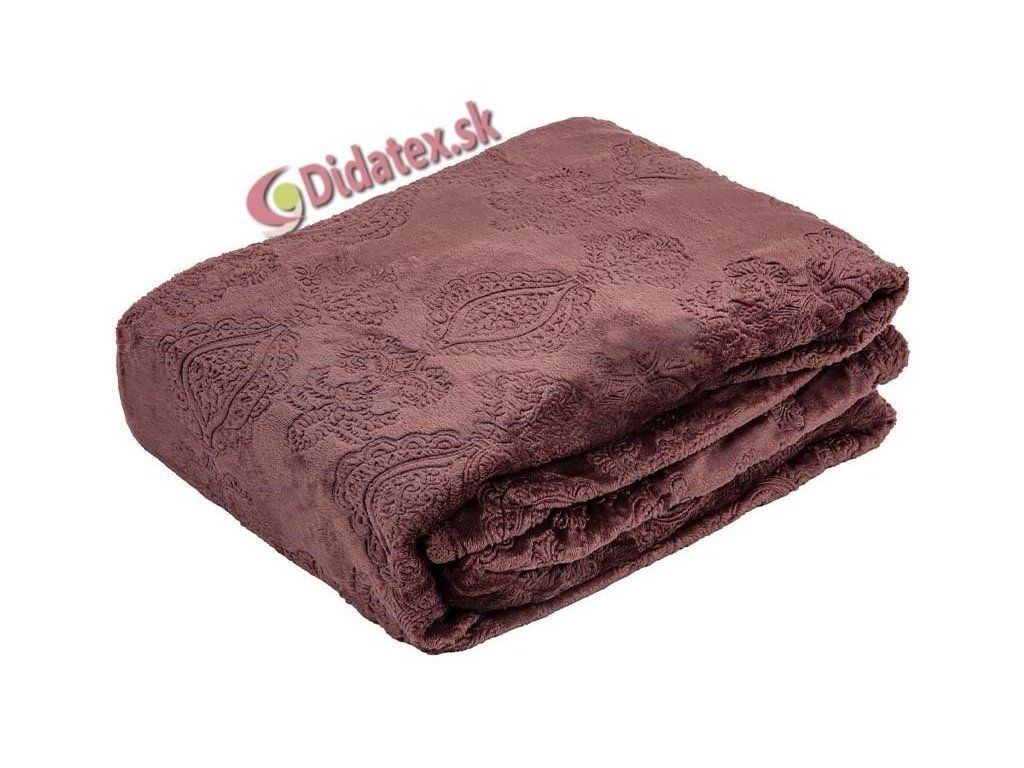 Jednobarevná deka s žakárovým vzorem.