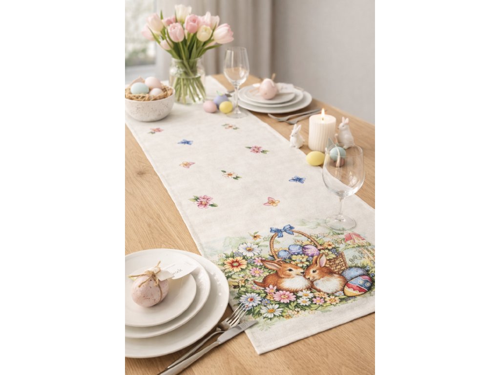 Štóla je ideální pro velikonoční snídani, sváteční oběd i odpolední posezení u kávy s rodinou. Krásně vynikne na jídelním stole, komodě nebo konferenčním stolku a jednoduše ji sladíte s čerstvými květinami, svíčkami či velikonočními dekoracemi. Díky jemným barvám a hravému designu působí útulně, svěže a zároveň elegantně.