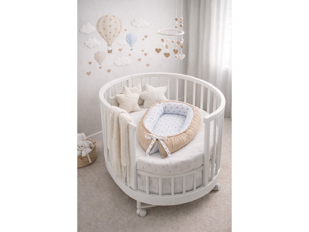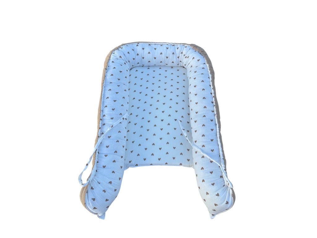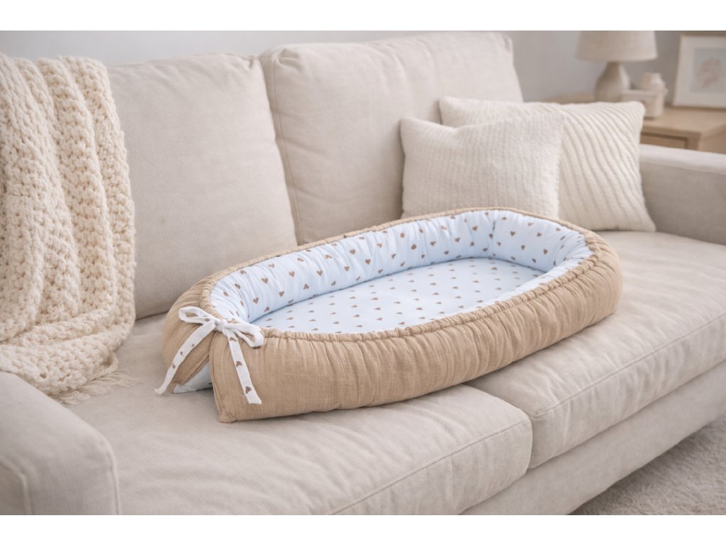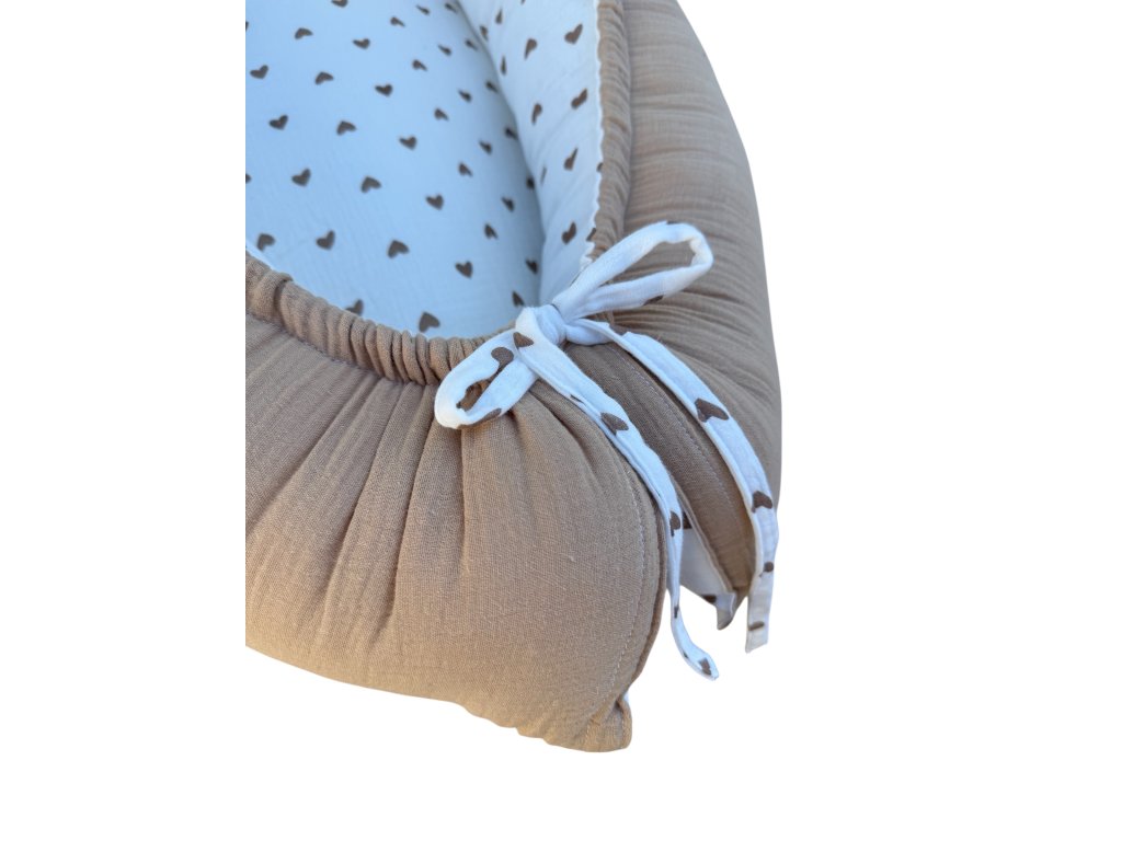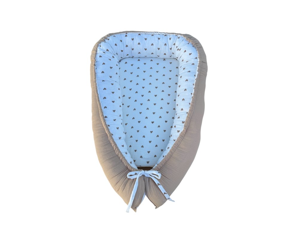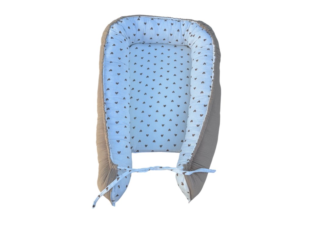 🧸 LOVE Mušelínové hnízdo pro miminko – oboustranné (srdíčkový vzor)