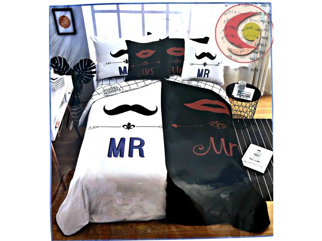 MR-MRS MOUSTACHE AND LIPS foto povlečení 6 set balení