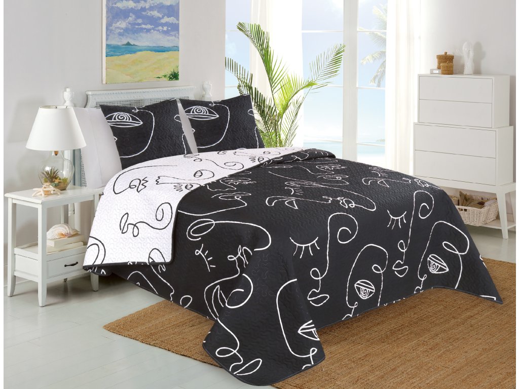 Oboustranný přehoz na postel v moderním designu, který především chrání ložní prádlo před prachem. Může také sloužit jako lehká přikrývka v horkých dnech nebo jako dekorativní doplněk do ložnice.